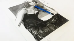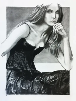Alexa ModelGraphite on Bristol Paper, Fine Detail Experimental Photorealistic Technique, Crafted with precision using graphite on Bristol paper, Alexa Model explores the boundaries of perception through an experimental photorealistic approach. The work pushes graphite beyond traditional draftsmanship, layering fine detail with subtle tonal shifts to create a subject that feels both immediate and intangible.
